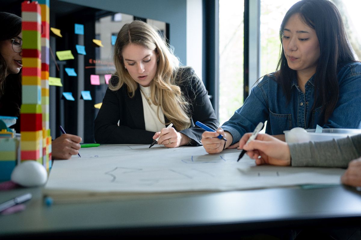 Wir arbeiten eng mit Hochschulen zusammen, um Studierenden praxisnahe Einblicke in kreative Innovationsprozesse zu geben. In unseren Design Thinking Kursen und Kurzworkshops erleben Studierende, wie Ideen in einem echten Kreativstudio entstehen – fernab vom klassischen Seminarraum.